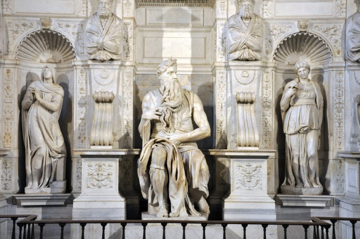 Другая римская базилика - Сан Пьетро ин Винколи - может похвастаться наличием не менее ценного произведения Микеланджело. Грандиозная скульптурная группа, композиционным центром которой является монументальная фигура Моисея, была создана великим гением в первой половине XVI века в качестве надгробного памятника для Папы Римского Юлия II.