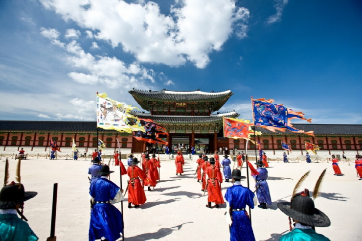 Церемония смены караула во дворце Кенбоккун. Фото: Korea Tourism Organization