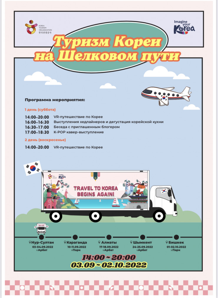 Стоит отметить, что в сентябре этого года Организация туризма Кореи планирует провести в городах Казахстана и Кыргызстана фестиваль "Туризм Кореи на Шелковом пути". Он пройдет в сентябре этого года в Алматы, Нур-Султане, Шымкенте, Караганде, Талдыкоргане и Бишкеке. Подробности программы фестиваля доступны на странице в Instagram.