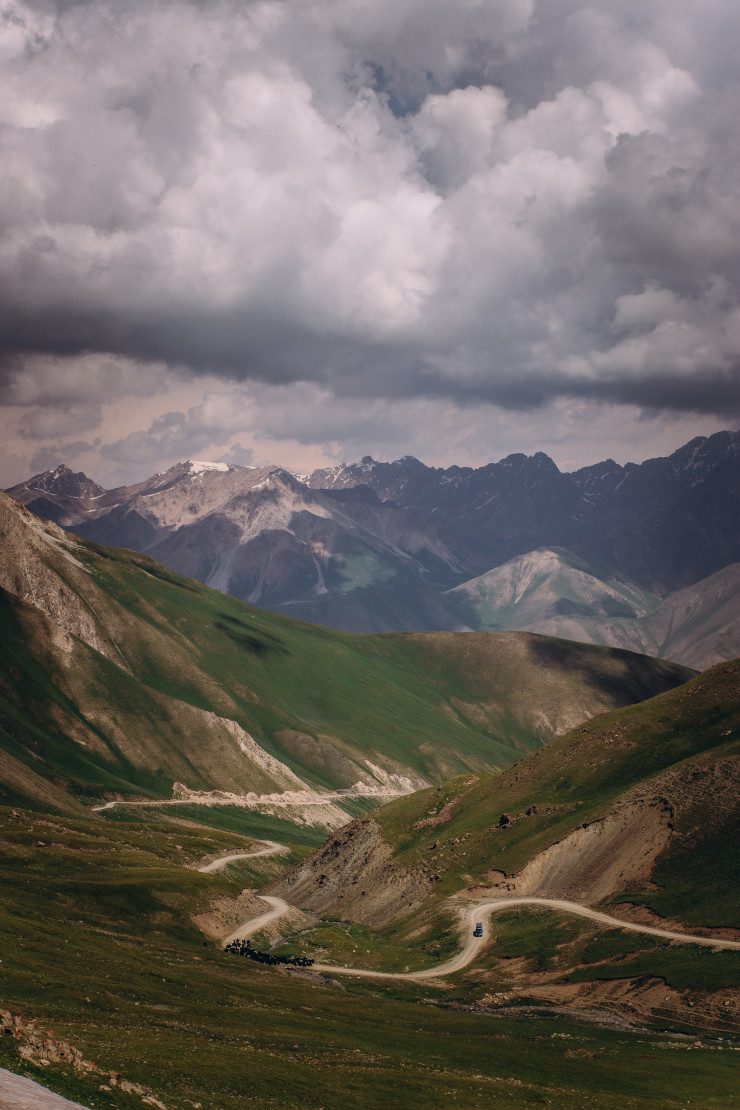 Затем мы отправились в город Нарын, пообедали в кафе и поехали дальше в сторону озера Сон Кель. Мы проезжали через перевал Тескей-Торпок (33 попугая), а по пути были шикарные виды!