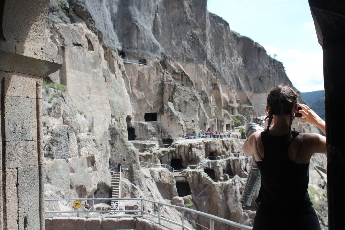 Здесь, в Вардзии, находится действующий пещерный монастырский комплекс XII-XIII веков. Это просто невероятное место, которое в праве называться памятником древней архитектуре и строительству. Это место еще называют "Пещерами царицы Тамары".