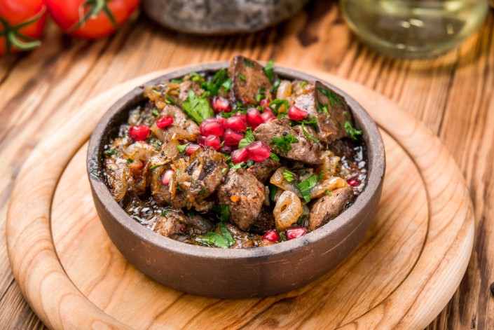 Грузия - это в основном "мясная страна", тут любят и умеют готовить мясо. Главной особенностью грузинской кухни является отсутствие ограничений в выборе мяса, и для приготовления блюд широко используется и говядина, и баранина, и свинина, и птица. Шашлык, сациви, шкмерули, оджахури, чакапули, чахохбили - согласитесь, названия этих блюд звучат словно музыка. Конечно, обилие мяса на грузинском столе прекрасно дополняется большим количеством свежих овощей и зелени. Кинза, базилик, петрушка, зеленый лук, мята, перец - все это придает блюдам особый грузинский вкус и аромат. Без них просто невозможно представить себе полноценное застолье.