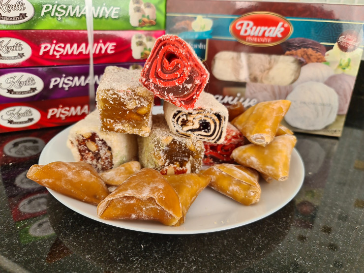 Здесь очень вкусные сладости, начиная от турецкого рахат-лукума, заканчивая шоколадом. На базарах представлено очень много видов орехов и сухофруктов. Например, турецкие фисташки стоят 3 500 тенге за килограмм, цена на рахат-лукум начинается от 1 800 тенге за килограмм.