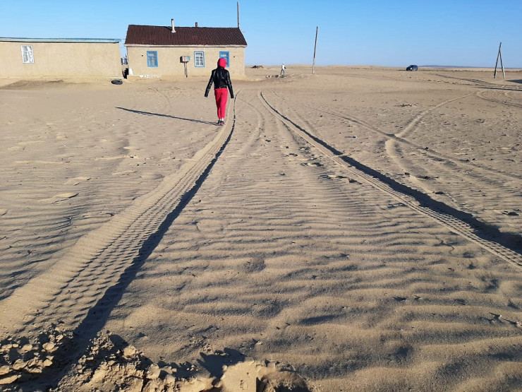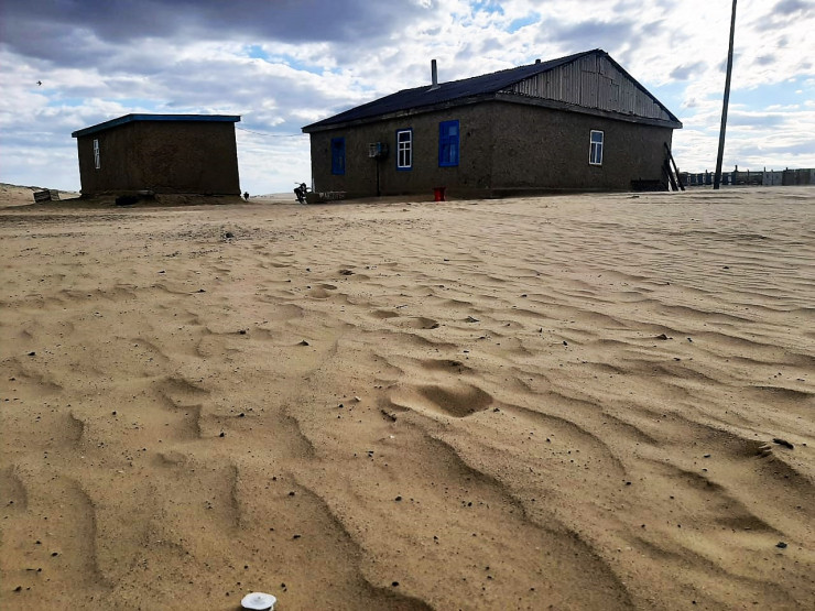 "Песок иногда заваливает наш дом по крышу. Утром не выйти на улицу. Бывает, нанимаю трактор, приезжает, расчищает. И спустя неделю снова такая же картина. Каждый день ведрами убираем песок. Но его все больше и больше. Мы уже начали строить еще один дом в новом Акеспе. Придется со временем переезжать", - рассказывает он.