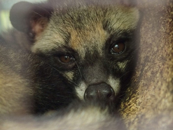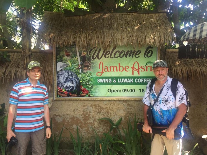 В последний день нашего пребывания на Бали познакомились мы и с необычными местными обитателями. Уже по дороге в аэропорт заехали в пригороде города Убуд в центр Jambe asri, представляющий собой маленькую кофейную плантацию и одновременно звероферму. Здесь производится знаменитый кофе лувак - один из самых дорогих сортов в мире. Наверное, многие слышали, что суть его изготовления заключается в том, что живущие в Южной и Юго-Восточной Азии пальмовые куницы - мусанги - едят в том числе и плоды кофейного дерева, после чего испражняются зернами кофе, которые люди собирают, моют и сушат на солнце. В желудочно-кишечном тракте эти зерна под воздействием определенных бактерий и ферментов расщепляют часть белков, придающих кофе горечь, тем самым изменяя его вкус. На Бали эти зверьки называются луваками, они и дали название переработанному ими кофе.