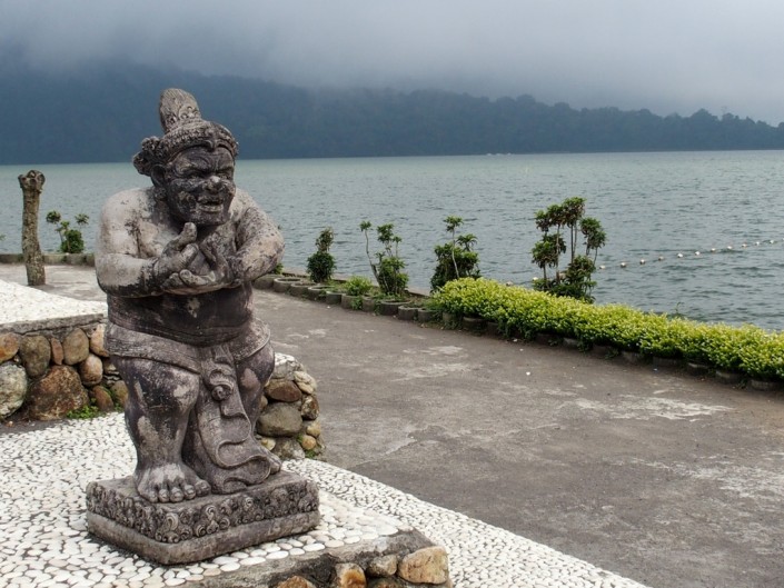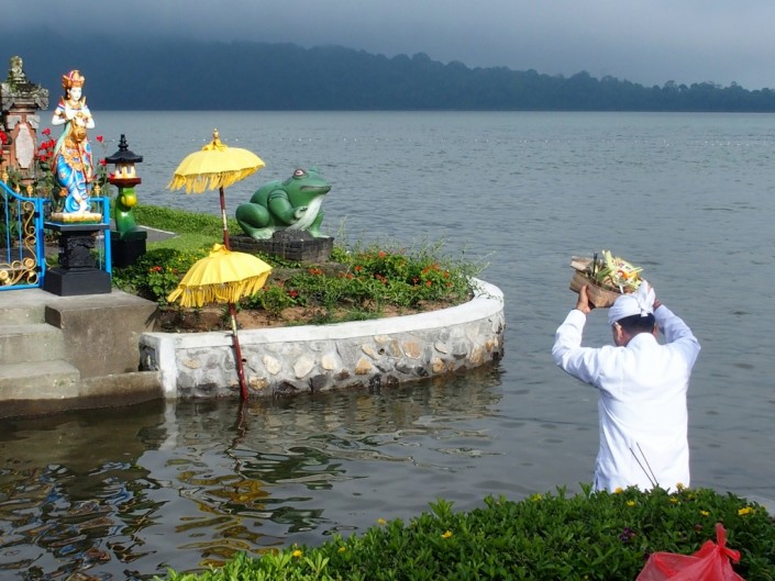 Прежде чем начать делать что-то важное, балийцы молятся Брахме-Созидателю, а уже в процессе работы они обращаются к Вишну, поскольку этот бог-хранитель не даст исчезнуть результатам трудов. Хотя самым могущественным здесь считается все-таки Шива-Разрушитель (уж не отголосок ли это многочисленных землетрясений и извержений вулканов на этой земле?). Впрочем, почитаются и некоторые другие божества индуистского пантеона. Особенно сильно развит культ богини воды Дáну - ей даже посвящены два храма. Наверное, потому что пресная вода - особая драгоценность на острове, окруженном со всех сторон соленым океаном. Вдобавок на Бали главное занятие крестьян - выращивание риса, которое без достаточного количества воды невозможно.