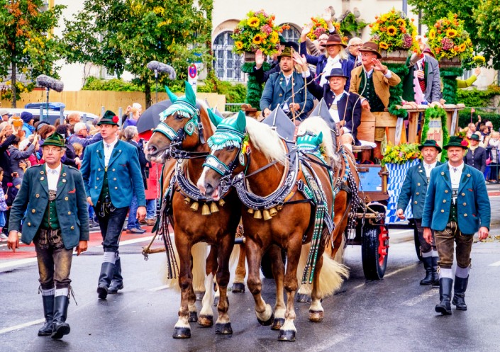 Костюмированный праздник проводится в первое воскресенье после открытия фестиваля. Около 8000 тысяч баварцев в национальных костюмах, под аккомпанемент народных музыкантов начинают торжественное шествие от здания парламента Баварии через центр города до луга Терезы. В параде принимают участие не только обычные горожане, но и представители государственной власти, в том числе министр-президент с семьей.