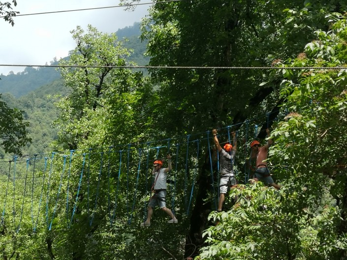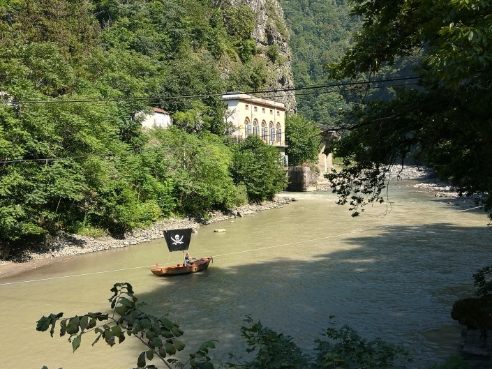 А в национальном парке Мтирала, что примерно в 40 минутах от Батуми, можно сходить и к водопаду и озеру. Чтобы добраться до них, придется перебраться через речку на навесной переправе, крутя колесо. Переправа платная – лари с человека. По дороге к достопримечательностям находится веревочный парк, а еще очень много крупной и кисло-сладкой ежевики.