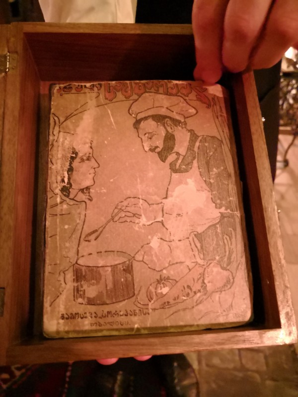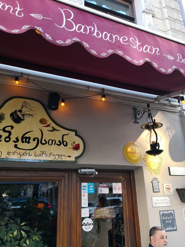 После непродолжительной экскурсии по старинным улочкам грузинской столицы нас ждал ужин в необычном ресторане Barbarestan. Блюда в нем готовятся по рецептам поваренной книги 1914 года, которую владельцы приобрели на блошином рынке в Тбилиси.