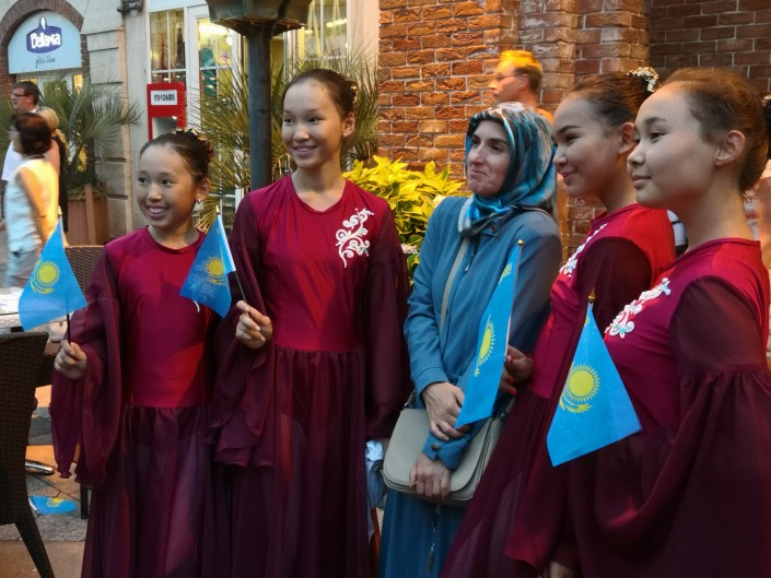 Начиная с площади Пьяцца, где летом часто проводятся фестивали и творческие конкурсы. Гуляя по вечернему городу, я неожиданно услышала родную казахскую речь и выкрики "Казахстан!"  – на площади выступали детки из Актау. Артисты, исполнившие танец под "Дайдидау" Димаша Кудайбергена, растрогали иностранцев – один за одним они подходили, чтобы сфотографироваться.