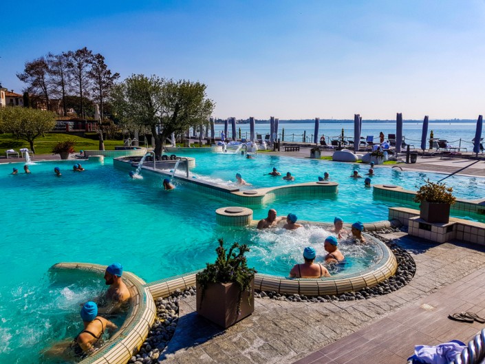 Сан-Джулиано-Терме. Термальные воды бьют из подземного источника у подножья холма Сан Джулиано. Богатые щелочью и сульфатами, "восточные" - температура 40,5 °С, "западные" - температура 38 °С. Источники имеют одинаковые органолептические свойства и используются при одних и тех же заболеваниях и патологиях. Воды курорта применяют для лечения ревматизмов и реабилитации после травм и растяжений, респираторных и сосудистых заболеваний. Различаются лишь способы применения двух разных типов вод. Показания к лечению: заболевания опорно-двигательного аппарата, ревматические болезни, заболевания органов дыхания (ринит, риносинусит, фаринголарингит, бронхит), нарушения кровообращения и заболевания кровеносных сосудов, нарушения иммунитета, стресс, усталость.