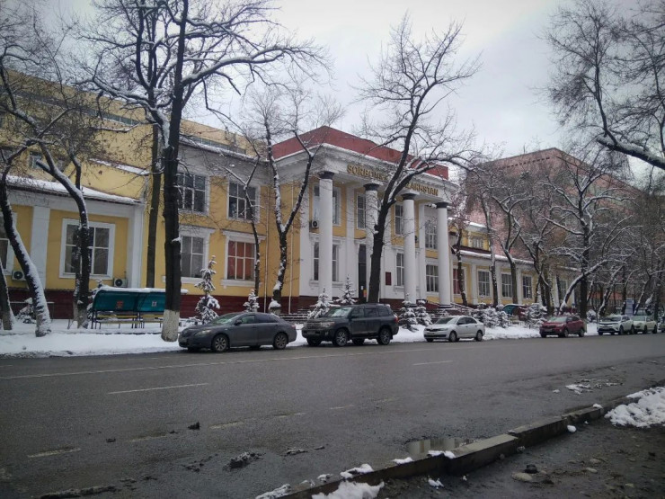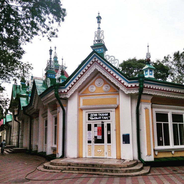 Это здание бывшего верненского торгового дома. Оно считается памятником архитектуры. Построено было в 1912 году, по другим источникам - в 1896 году.
