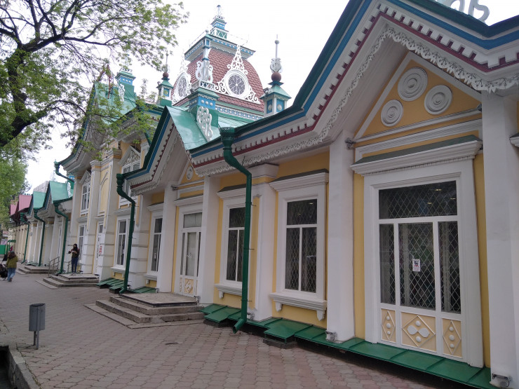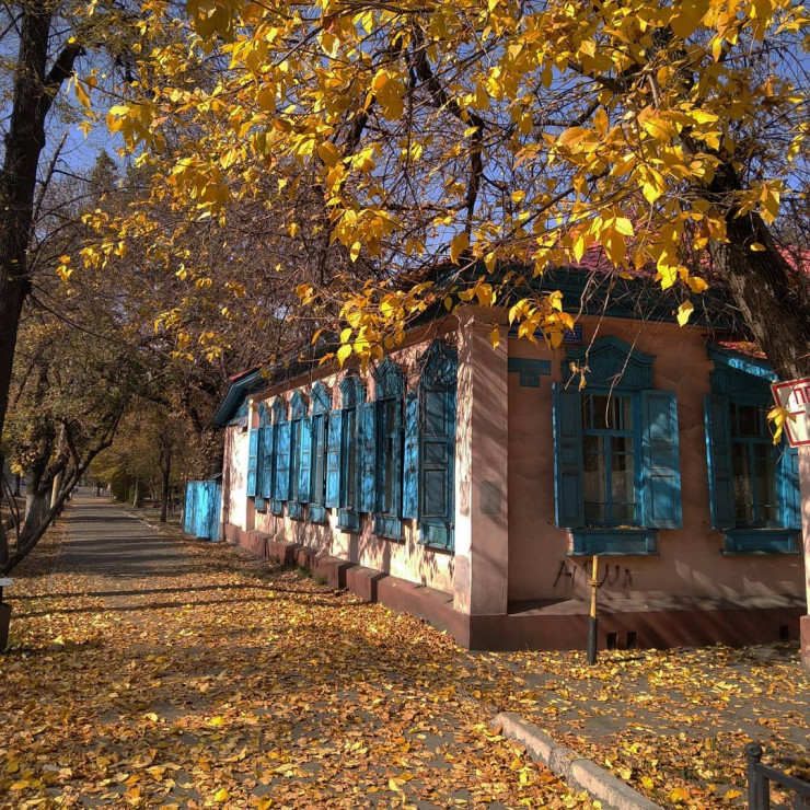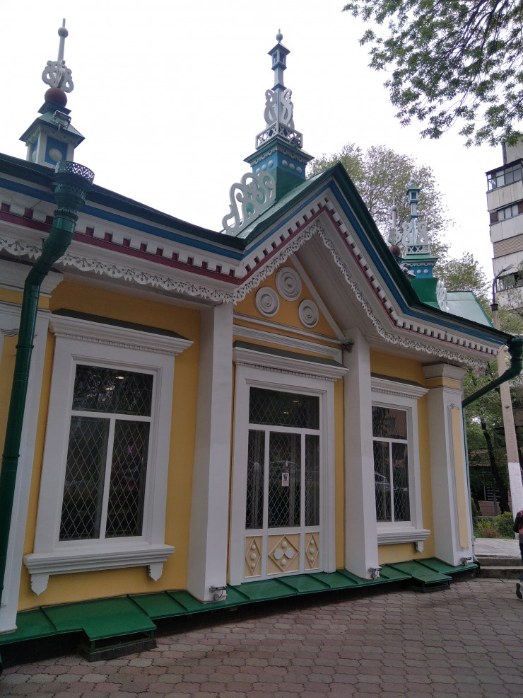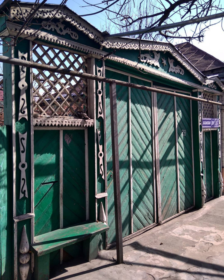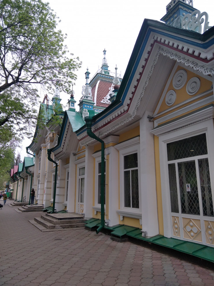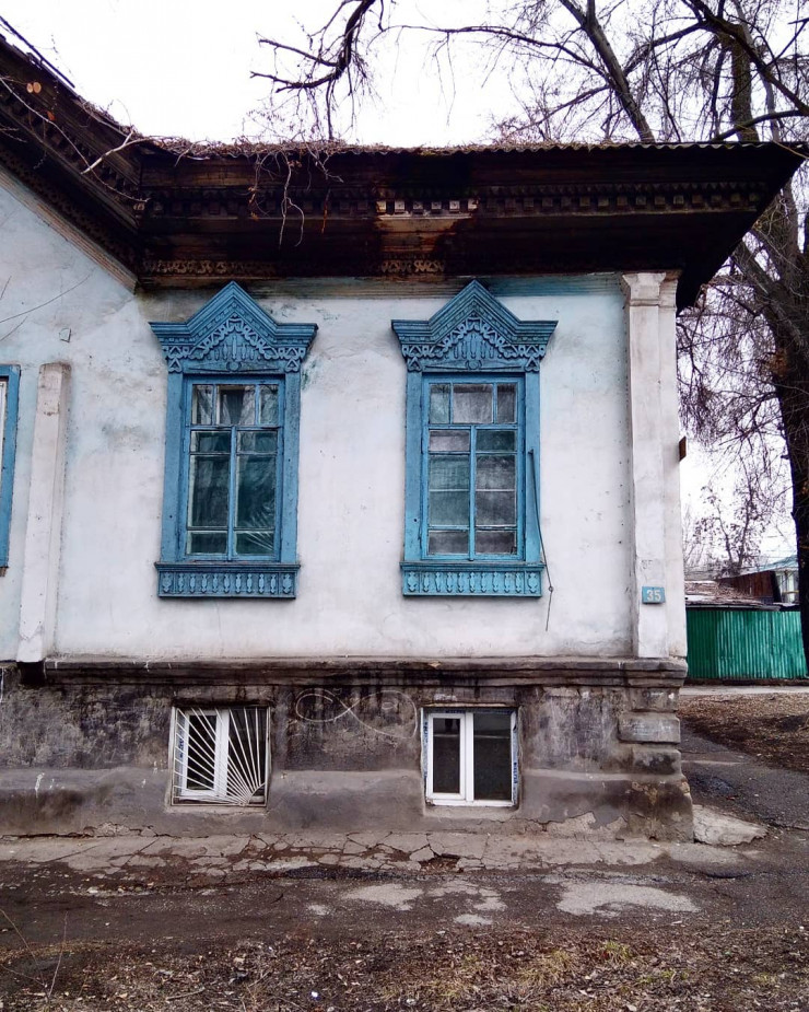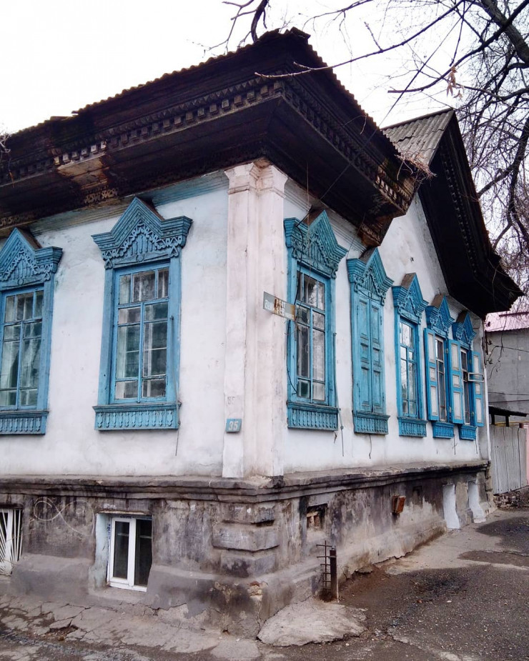 Это Малая станица. Здесь в основном селилось казачье сословие. Поэтому это один из немногих районов Алматы, где еще сохранились памятники вернеского стиля - дома со ставнями и резьбой по дереву. Что удивительно, они сделаны в основном из тянь-шаньской ели. В архитектуре наблюдается русский деревенский станический стиль.