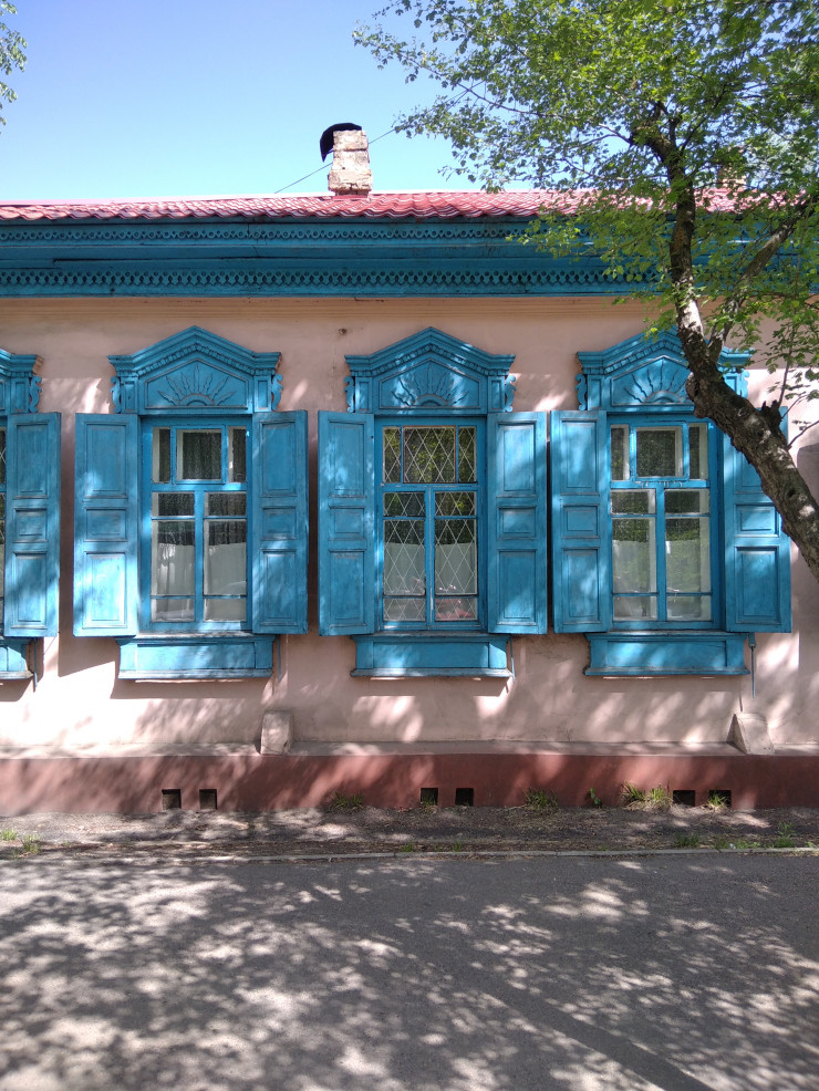 Кстати, в этом белом доме с голубыми ставнями жил когда-то казачий атаман Большой Алматинской станицы. В архитектурном реестре акимата датой постройки этого дома значится 1918 год, что, скорее всего, не так. Вероятнее, здание было построено в конце XIX века.