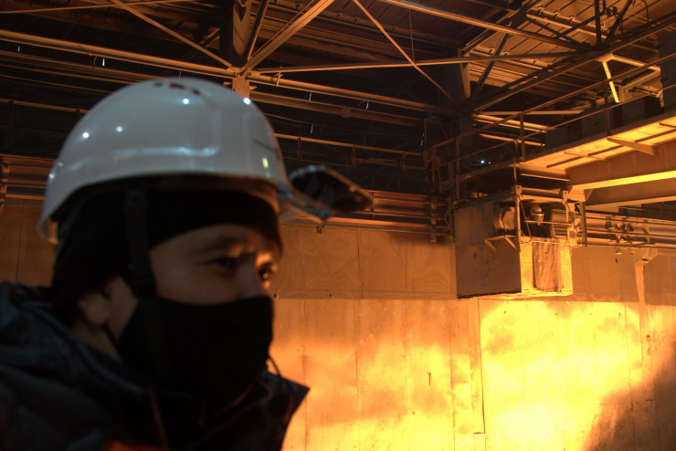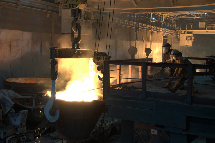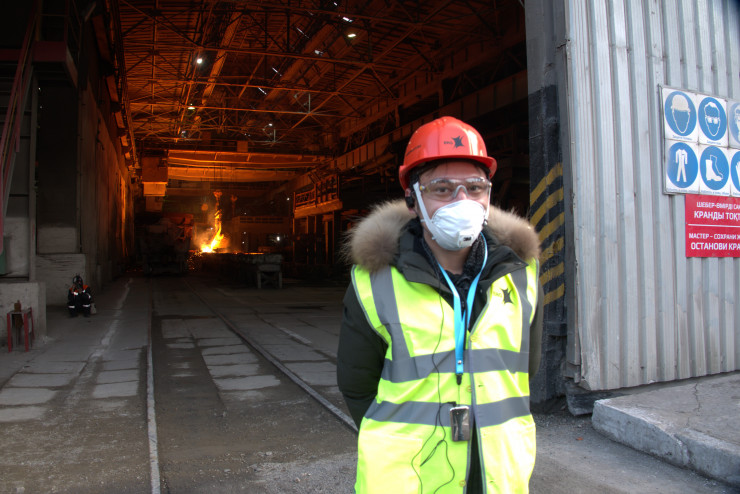 Пока директор завода рассказывает о процессе, на заднем плане в кабинке крана можно увидеть одну из них. К слову, в историю завода именно этот цех вошел как кузница кадров, отсюда выходили металлурги, ставшие руководителями компании. Например, как нынешний директор завода.