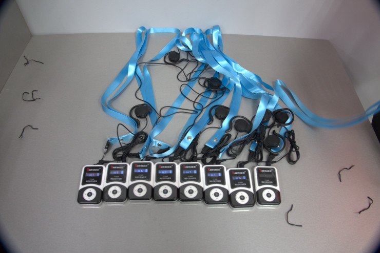 Такие аудиоустройства выдают туристам для того, чтобы они могли слышать гида. В цехах бывает довольно шумно, так как на время тура работа на заводе не прекращается: тут и там слышны грохочущие раскаты больших механизмов и спецтехники.
