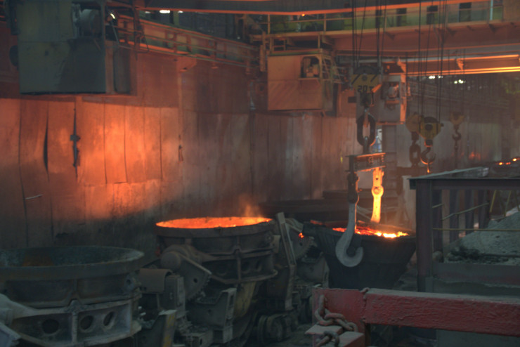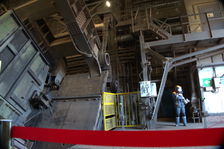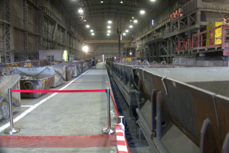 Следом направляемся во второй плавильный цех - здесь впечатлений не меньше. Здесь уже на протяжении 78 лет непрерывно работают семь плавильных печей.