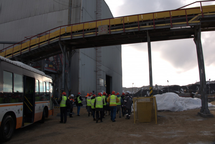Туристов везут к первому пункту посещения - в цех фракционирования и отгрузки ферросплавов. Это финальная часть производственного процесса. Место, куда привозят уже готовую продукцию.