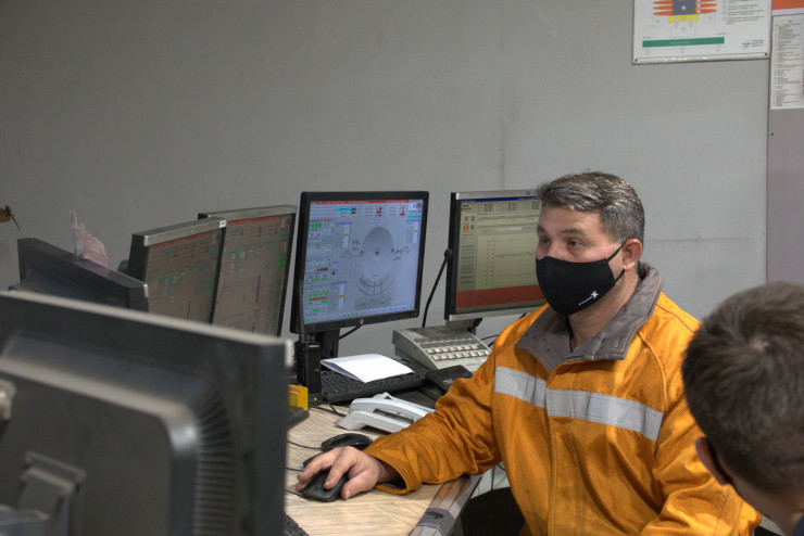 Ну и под конец туристов ведут в "головной мозг" завода, центр управления производством, главный компьютер и прочие словосочетания - пультовую. Отсюда сотрудники следят за работой двух печей 43 и 44. Все показатели работы они видят в онлайн-режиме, а также наблюдают за происходящим по установленным камерам.