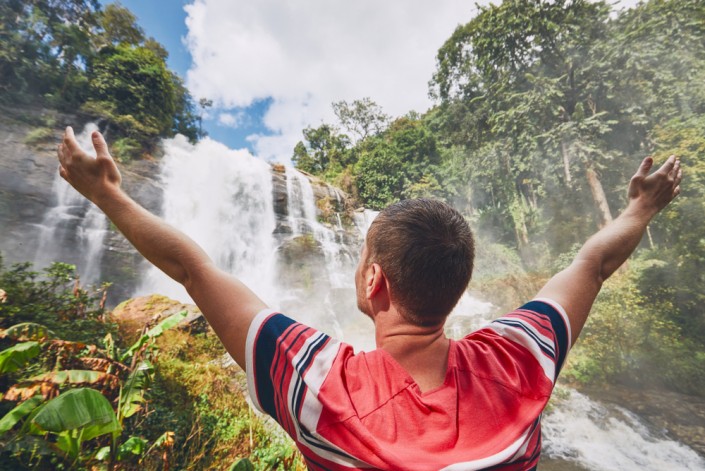 Наконец, закупив в магазинчике (уже с продавцами) сувениры местного производства, мы отправились к водопадам, которыми горная провинция чрезвычайно богата. В лесу, где текла речка и низвергались водопады, первым делом обратили на себя внимание оранжевые и желтые ленточки, повязанные на стволах многих деревьев. Это были маркеры: они указывали на ценные породы, которые категорически запрещено вырубать. Еще лет сто назад 80 процентов территории страны составляли леса. К 1961 году их осталось чуть больше 50 процентов, а сейчас – процентов 20 с небольшим. Такая катастрофа произошла буквально за полвека в результате нещадной вырубки деревьев и распашки земли под сельскохозяйственные угодья. Поэтому для сохранения оставшихся лесных массивов нынче также действуют специальные королевские проекты, а департамент лесного хозяйства даже привлекает монахов из расположенных поблизости монастырей, чтобы те напоминали людям о необходимости бережного отношения к лесам, да и к любым другим природным ресурсам.
