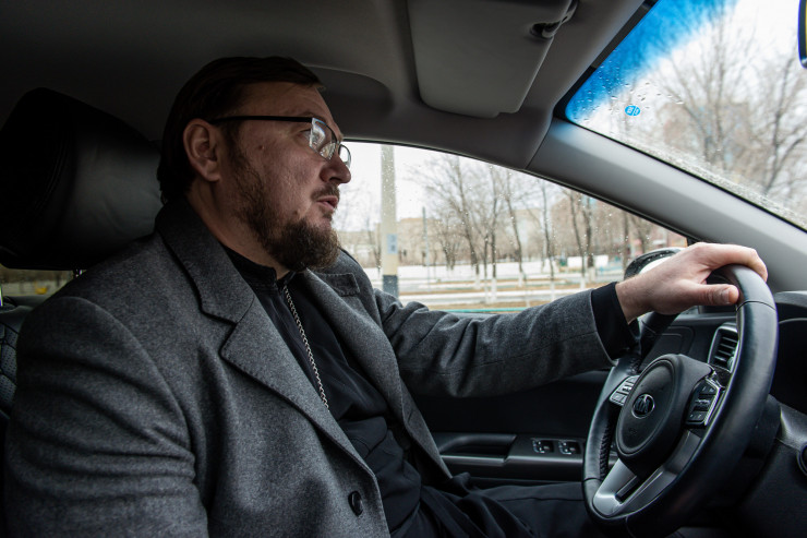 На стартовую площадку № 31 нас отвез отец Михаил. Он в священническом облачении, лишь накинул для тепла цивильную куртку. Нам тоже порекомендовал одеться теплее: в степи ветер такой, что сбивает с ног.