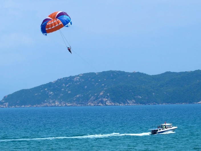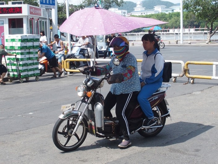 Но первое, что бросается в глаза, когда приезжаешь в Санью, это не только количество мопедов на улицах (что характерно для всей Юго-Восточной Азии), но и ноу-хау островитян – прикрепленные к байкам зонтики. Причем зонтики эти явно изготовлены специально для мотоциклистов, поскольку имеют не круглую форму, а удлиненную с одной стороны, чтобы тень падала и на сидящего сзади пассажира.