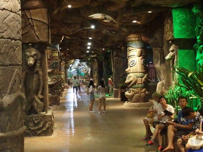 Сюда можно приезжать на целый день. Огромная территория включает в себя разнообразные тематические зоны: "древний город", храмовый комплекс, где представлены все основные религии Китая, ремесленные мастерские, уличный рынок, вольер с жирафами, деревни ли и мяо, в которых артисты в традиционных нарядах танцуют, поют и просто гуляют вместе со зрителями. А есть еще аттракционы "Мир льда", "Тропический тайфун", "Зеркальный лабиринт", "Комната призраков", "Дом иллюзий". Можно даже попасть в сказочное подземелье с тотемными скульптурами и наскальной живописью.