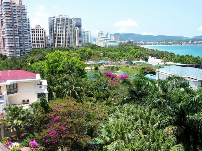 Город Санья, главный курорт острова, встретил нас 40-градусной жарой и жуткой влажностью в двадцатых числах мая. Когда в первый день я вышел на территорию отеля, где мы поселились, фотоаппарат отказался работать: линзы мгновенно запотевали до того, как я успевал нажать пусковую кнопку. Как позднее рассказали наши гиды, нам "повезло": мы застали самые жаркие дни сезона. Впрочем, через пару дней китайские боги небес смилостивились: прошел дождик, потом еще один, жара спала, и "жить стало веселее".
