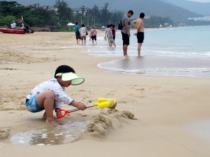 Вообще, зонтики в городе, наверное, распространены не меньше, чем в Лондоне. Только цель прямо противоположна – защищать не от дождя (достаточно редкий гость в этих краях), а от солнца. И связано это не только с тем, что в условиях тропиков в летние месяцы оно печет нестерпимо, но и с тем, что в китайской культуре загорать не очень-то принято. Для девушек эталон красоты – белая кожа. Загар – признак того, что перед вами человек из низших слоев общества, бедный, кто работает где-то на улице или в поле. Поэтому, кстати, и маски на лицах мотоциклистов (а нередко и пешеходов) здесь говорят вовсе не о загрязненности воздуха (экология на Хайнане прекрасная), а служат для спасения от солнечных лучей. Этим же во многом объясняется и пустынность тех пляжей, на которых мне довелось побывать. До последнего времени пляжным отдыхом в Китае мало кто интересовался. Лишь в последние годы он потихоньку стал входить в моду, и сегодня даже можно увидеть чудо – загорающих девушек-китаянок.