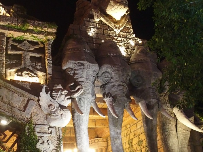 Говорят, что по зрелищности это шоу идет на втором месте в мире, уступая только Цирку дю Солей. Наверное, так оно и есть. Главное, что создатели не просто объединили древними сюжетами искусство народного танца, традиционный театр, цирковую акробатику и возможности современных технологий, но смогли это сделать гармонично, так что не возникает ощущения эклектичности. А ведь на сцене низвергались настоящие водопады, парили воздушные гимнасты, ковер-самолет проплывал прямо над головами зрителей, а ряды, где они сидели, вдруг раздвигались, образуя новое сценическое пространство. Особенно меня поразил настоящий дождь в зале. Я сидел на первом ряду, можно сказать, амфитеатра, и до партера был проход метра в два-три. В один из моментов служительница пробежала вдоль нашего ряда, прося не вытягивать ноги за разделительную черту. И тут же хлынул ливень: откуда-то сверху били мощные струи, заполняя все пространство прохода, но не касаясь зрителей. Можно было протянуть руку и подставить под дождь ладонь.