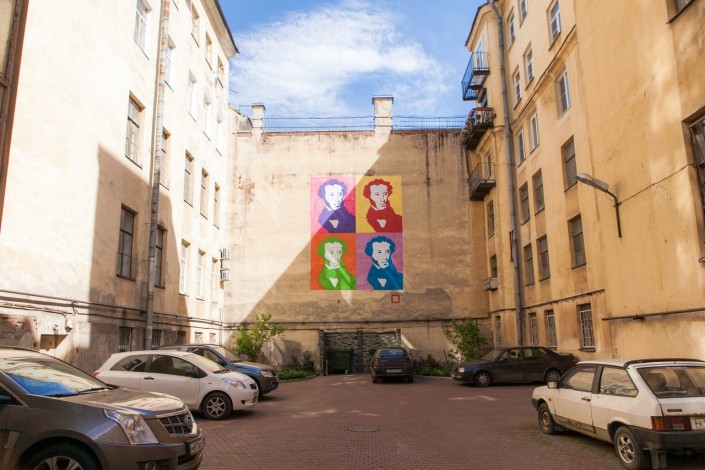 А работу "Пушкин в поп-арте" Паша Кас нарисовал 2 года назад на Итальянской улице Петербурга, на стене дома №37. Портрет Пушкина представлен в стиле знаменитой работы "Мэрилин" американского художника и дизайнера Энди Уорхола, которую он создал в августе 1962 года.