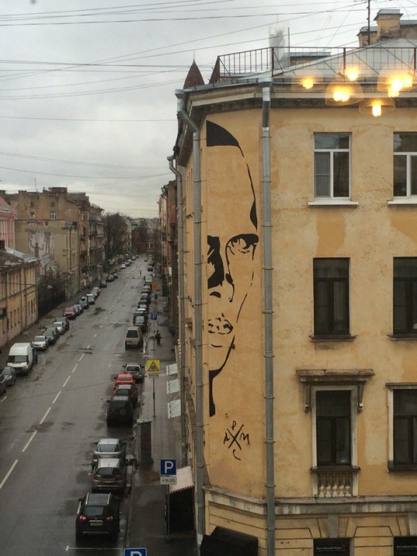 К примеру, буквально на днях на улице Маяковского появилось граффити "Посвящение Даниилу Хармсу". Именно на этой улице жили Владимир Маяковский и Даниил Хармс. Первый - громогласный голос революции, любимец миллионов, увековеченный еще при жизни. А Хармс - не издававшийся, запрещенный, дважды упрятанный в психушку и репрессированный в первые месяцы блокады. Он обрел своего читателя только через 70 лет после смерти.