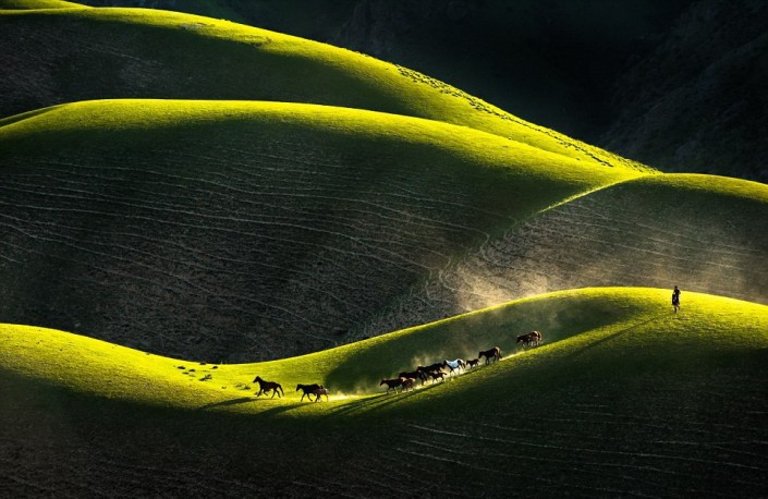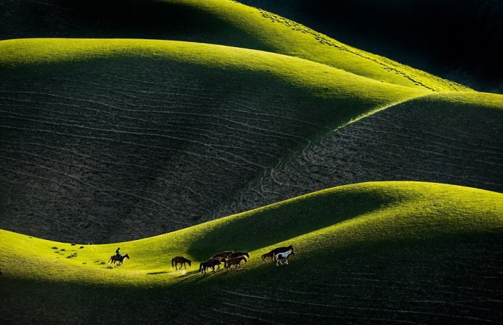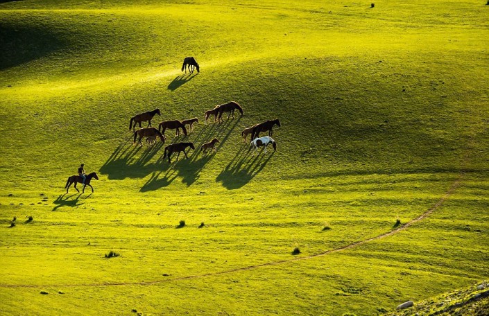 На снимках - этнические казахи, занимающиеся выпасом скота на зеленых долинах и изумрудных склонах холмов. "Этот край, граничащий с Казахстаном, известен развитым овцеводством, прекрасными лошадьми и потрясающей природной красотой. Здесь дом для казахов, которые зарабатывают на жизнь скотоводством", - пишет издание.