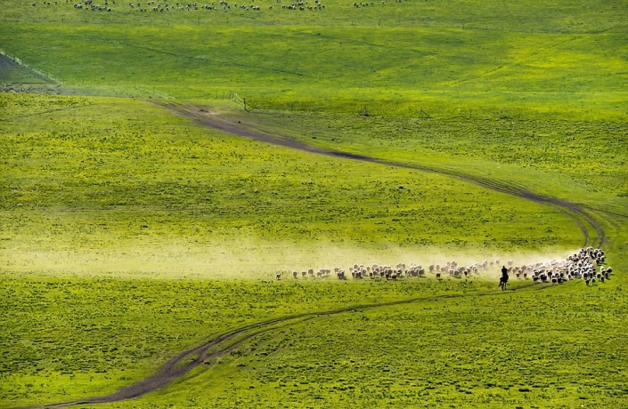 Немецкий фотограф запечатлел момент, когда кочевники перегоняли скот на тучные летние пастбища. Как сообщает китайское издание People's Daily Online, в 2012 году жители уезда Текес приступили к реализации программы по улучшению племенного животноводства.