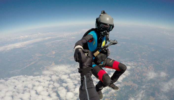 Прыжок выполнялся при помощи кислородного баллона в Теннеси (США) на военном аэродроме. Температура воздуха на высоте была -60 градусов.