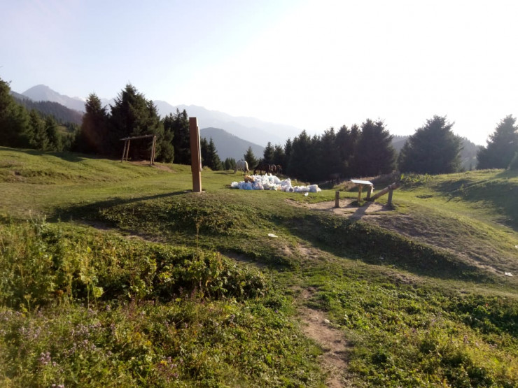 Отметим, что многие пытались забрать с собой по 1-2 пакету чужого мусора, чтобы очистить поляну, но все равно до сих пор на Кок-Жайлау остается большая куча пакетов.