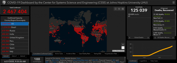 По данным университета Джонса Хопкинса, который ведет собственную статистику, число умерших пациентов с COVID-19 в стране превысило 125 тысяч. За все время в США зафиксировали 2,46 миллиона случаев заражения, свыше 670 тысяч человек выздоровели.