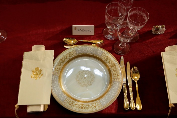 23.22. Пока раввин говорит лирическую речь - наставление новому президенту, Агентство REUTERS публикует фотографию столовых приборов, приготовленных к официальному обеду после инаугурации.