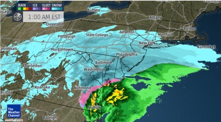 По прогнозам синоптиков, за выходные в Вашингтоне и некоторых других местах ожидается выпадение до одного метра снега, в Нью-Йорке - от 20 до 30 сантиметров осадков.