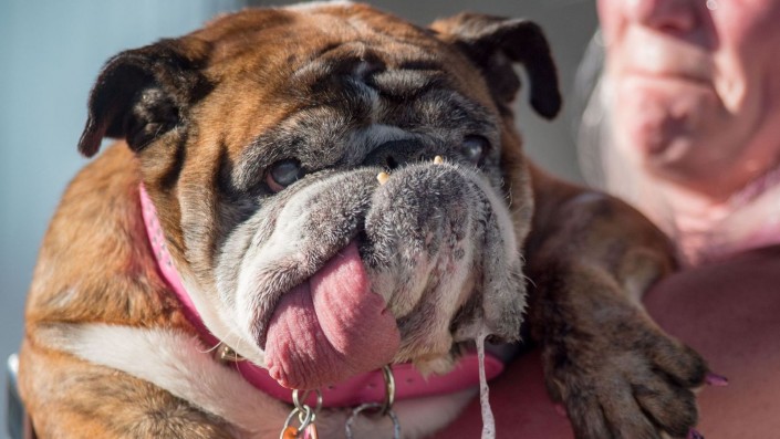 Самую уродливую собаку в мире назвали в США - победителем конкурса стал девятилетний английский бульдог Жа-Жа. Его хозяйке Меган Брейнард вручили денежный приз в размере 1,5 тысячи долларов, сообщает Sky News.
