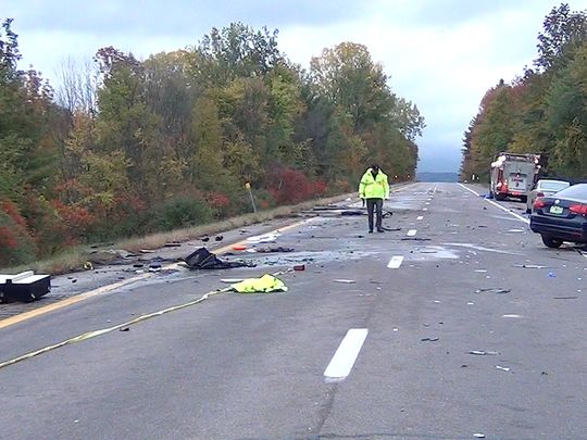 Инцидент произошел вечером 8 октября в американском штате Вермонт на трассе на федеральном шоссе номер 89 близ города Болтон. Водитель пикапа Toyota Tundra выехал на встречную полосу и столкнулся с автомобилем Volkswagen Jetta, при этом машина виновника ДТП загорелась.