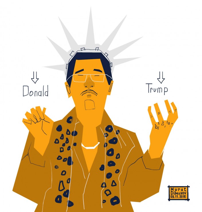 Как и любое другое громкое медийное событие, выборы президента США породили немалое количество интернет-мемов в социальных сетях. Сатира и ирония на тему поражения Клинтон, победы Трампа, или непредсказуемости американских выборов в целом всплывает как в остроумных шутках в микроблогах, так и в рекламных инструментах известных брендов. Наш соотечественник Мурат Дильманов тоже не остался в стороне от ситуации и совместил два популярных тренда: вирусный клип Pen-Pineapple-Apple-Pen и победу Трампа. Tengrinews.kz предлагает небольшую подборку самых популярных #election-mem'ов на данную минуту.