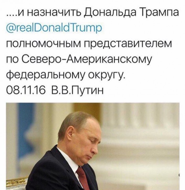 Ирония на тему популярного в интернете мифа о "пропутиновской" ориентированности Трампа.