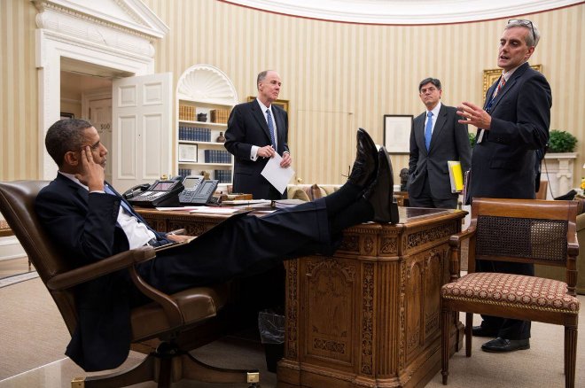 Некоторые комментаторы сравнили фотографии Конуэй с фотографиями бывшего американского лидера Барака Обамы. На них Обама, который также предпочитал неформальную обстановку, спокойно ставит ноги на стол в Овальном кабинете.