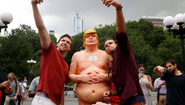 Статуи обнаженного Трампа в полный рост появились 18 августа в публичных местах в Нью-Йорке, Лос-Анджелесе, Сан-Франциско, Кливленде и Сиэтле. "Нравится нам это или нет, Трамп уже стал легендарной личностью в мировой культуре. В истории таких личностей всегда увековечивали в скульптуре и почитали", - завил один из организаторов проекта.