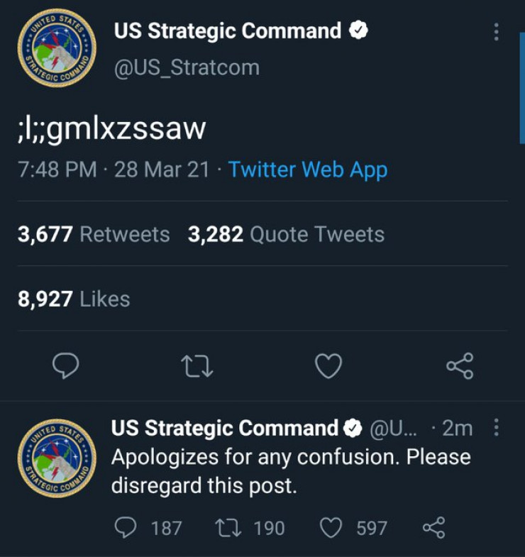Пользователи Сети предположили, что аккаунт Стратегического командования США попросту взломали.