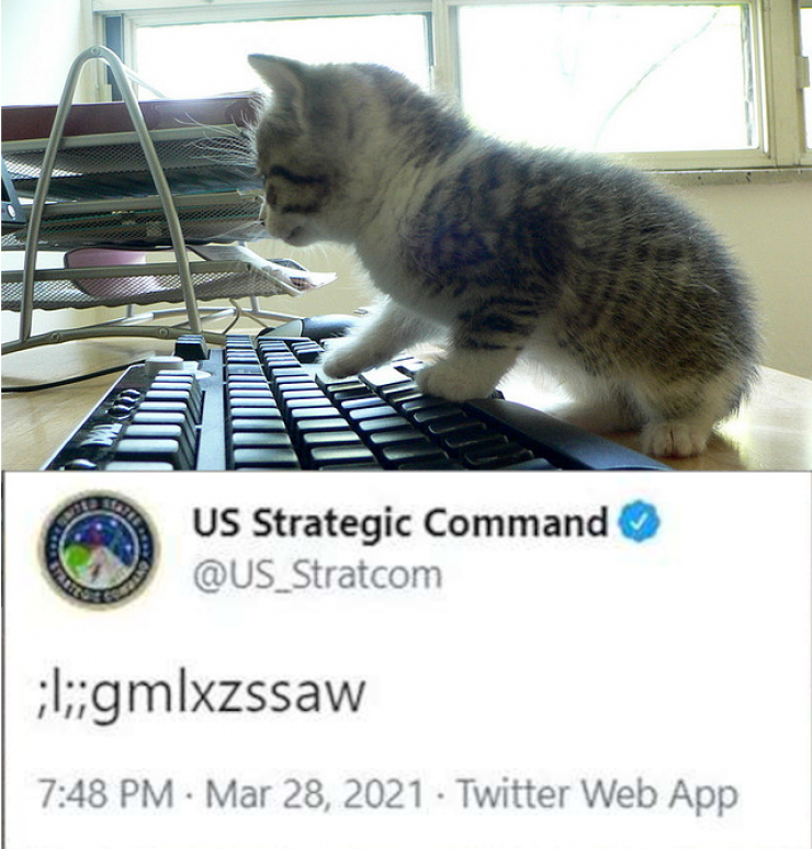Cообщение, представляющее собой хаотичный набор букв, в официальном Twitter-аккаунте Стратегического командования армии США напугало пользователей Сети, передает Tengrinews.kz со ссылкой на РИА Новости.