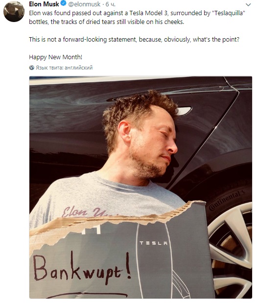 Отметим, что запись была опубликована 1 апреля. Возможно, это была первоапрельская шутка Маска. Позже он опубликовал фотографию с надписью "Банкротство".