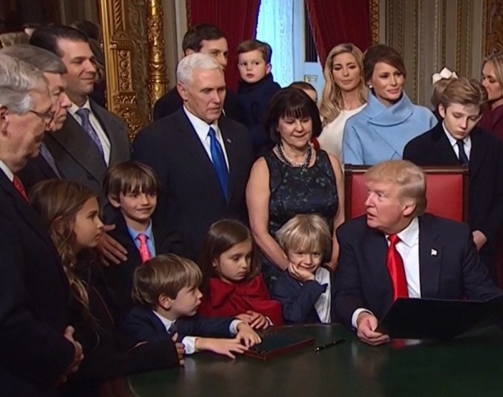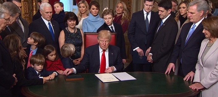 Мероприятие прошло в непринужденной атмосфере в так называемой президентской комнате в Капитолии. Для подписания Трамп использовал несколько ручек. В помещении в это время присутствовали лидеры Республиканской партии, а также лидер демократической фракции меньшинства Нэнси Пелоси. Также рядом с новым президентом находились его дети и внуки.