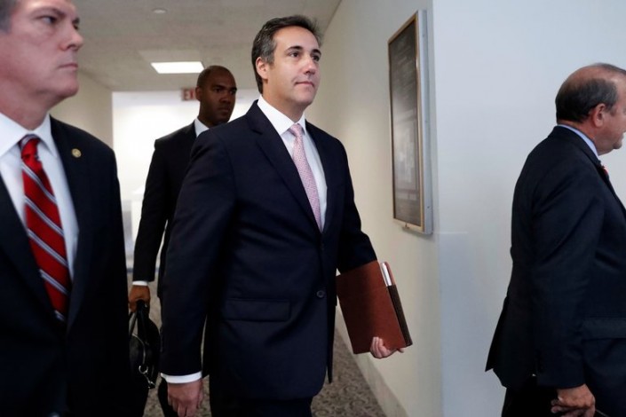 Адвокат Майкл Коэн (в центре). Фото: Pablo Martinez Monsivais/Associated Press